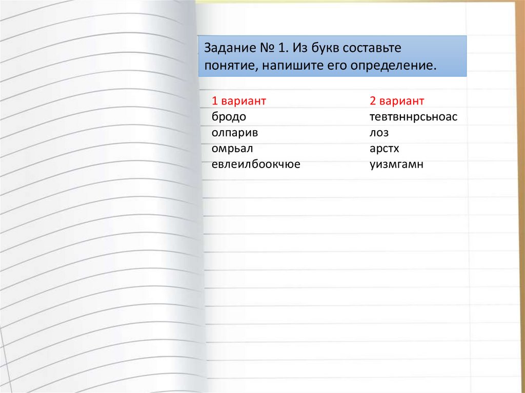 Задание № 1. Из букв составьтепонятие, напишите его определение.