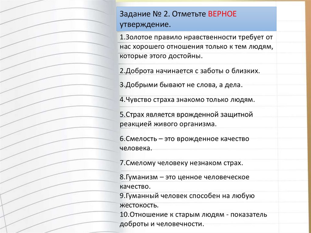 Задание № 2. Отметьте ВЕРНОЕутверждение.