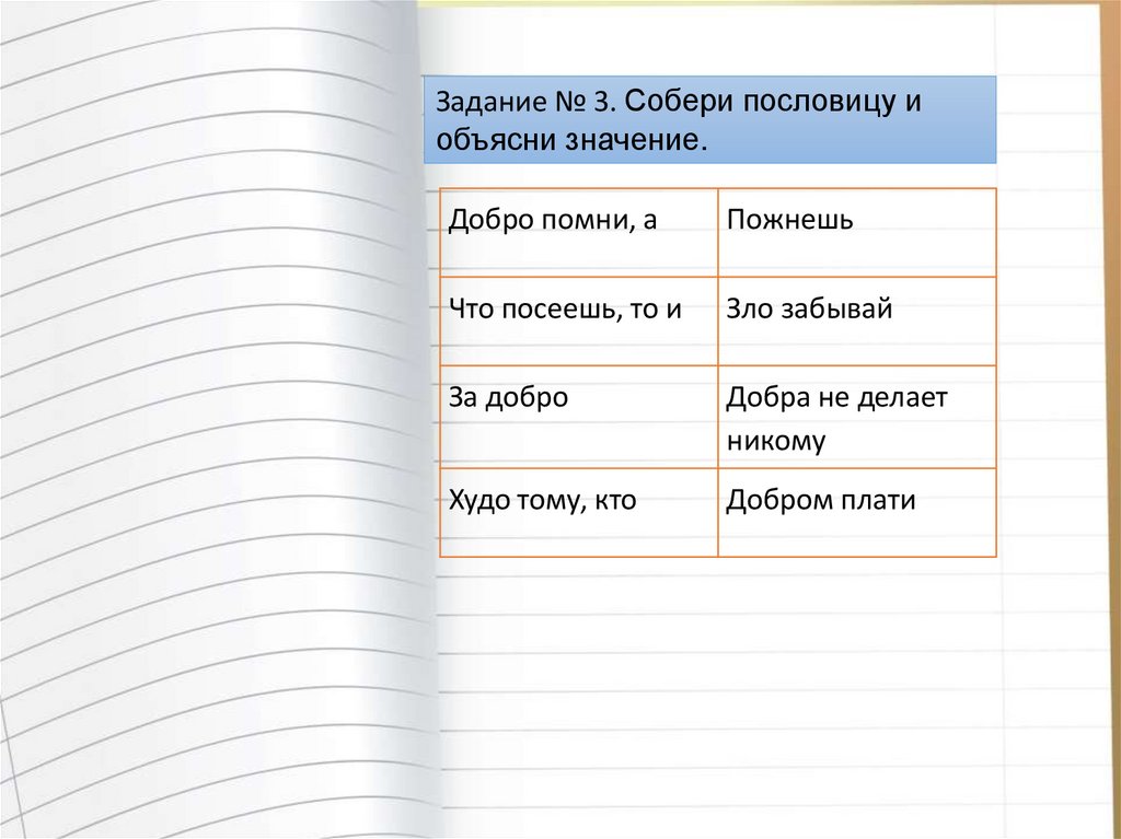 Задание № 3. Собери пословицу иобъясни значение.
