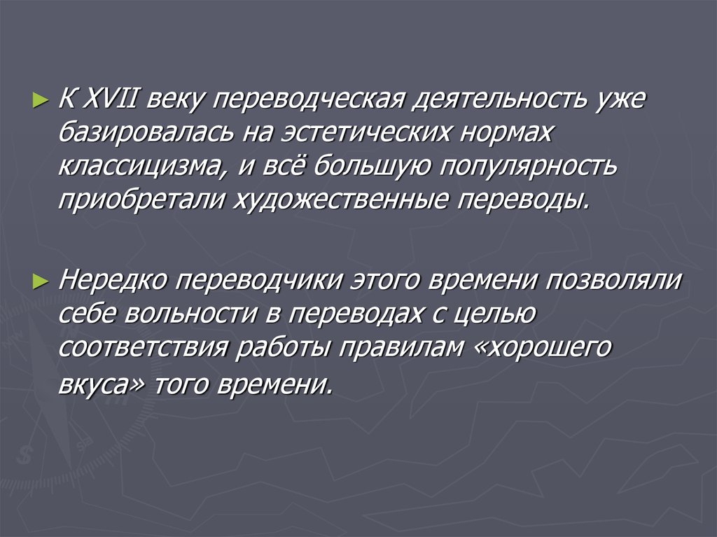 1. РАЗВИТИЕ ПЕРЕВОДЧЕСКОЙ ДЕЯТЕЛЬНОСТИ В XVII-XVIII ВЕКАХ Выполнила студентка 1 курса ФИЯ (114 группа) Глущенко Олеся