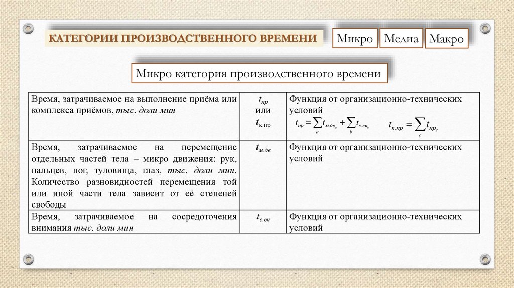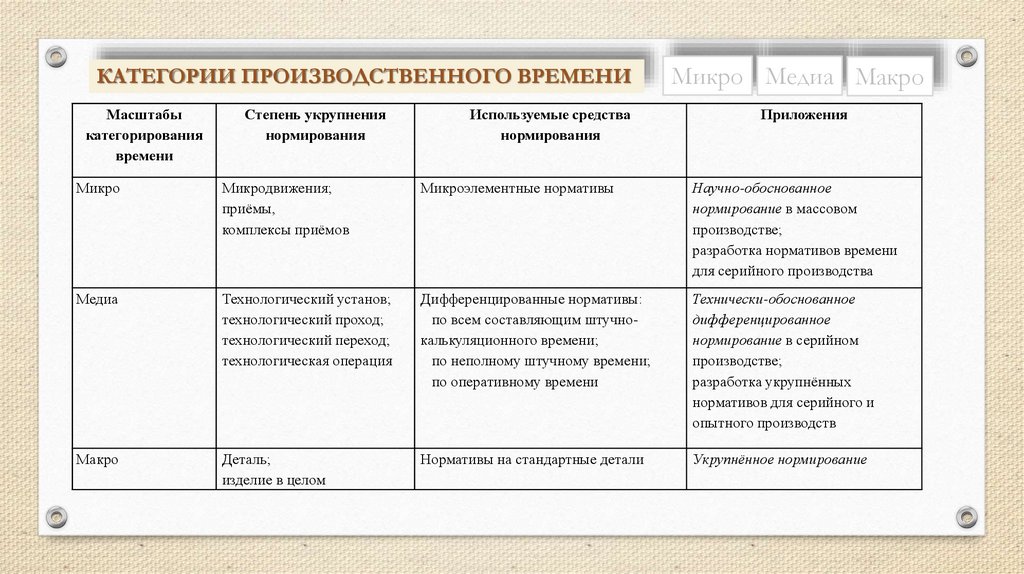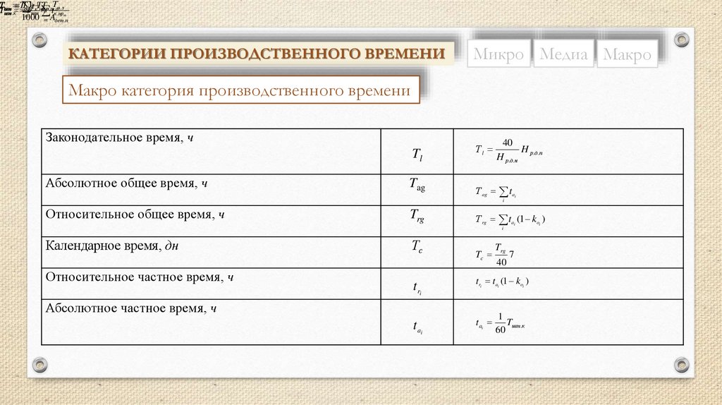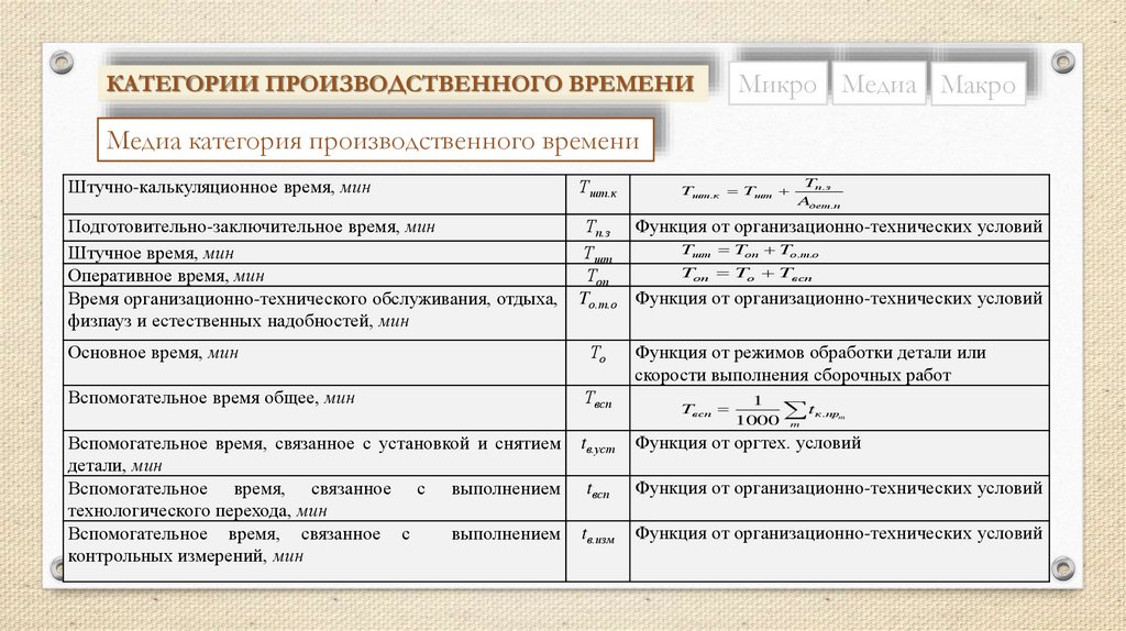 КАТЕГОРИИ ПРОИЗВОДСТВЕННОГО ВРЕМЕНИМикро Медиа Макро