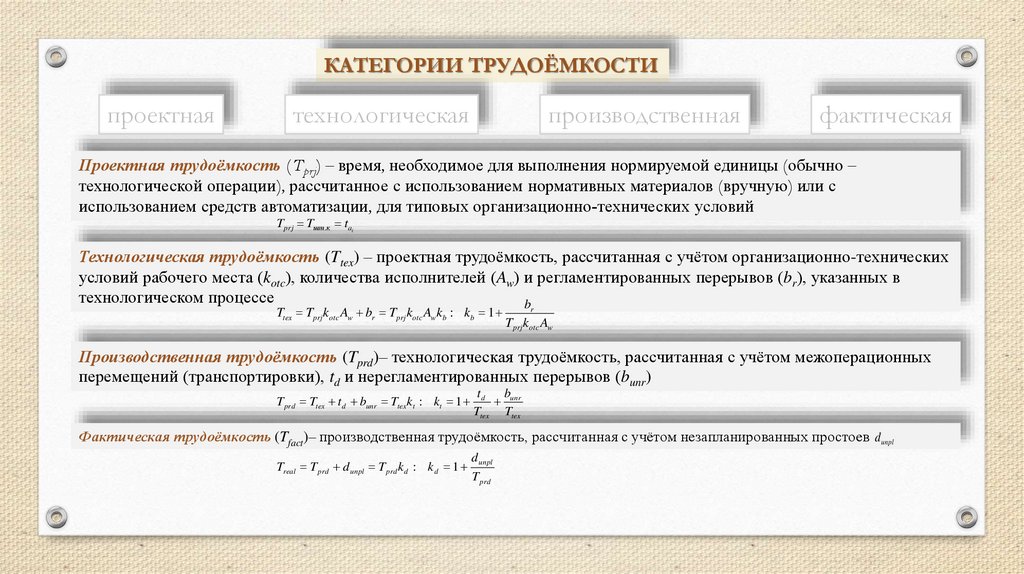 Проектная трудоёмкость (Tprj) – время, необходимое для выполнения нормируемой единицы (обычно –
