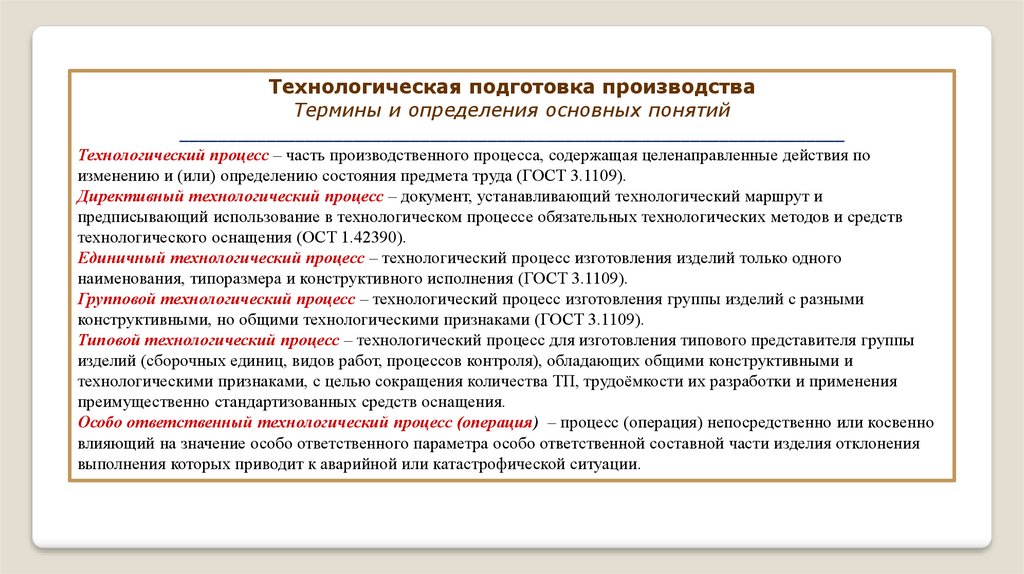 Технологический процесс – часть производственного процесса, содержащая целенаправленные действия по