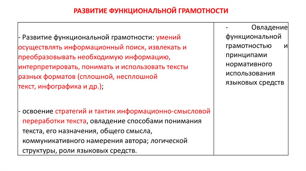РАЗВИТИЕ ФУНКЦИОНАЛЬНОЙ ГРАМОТНОСТИ- Развитие функциональной грамотности: умений