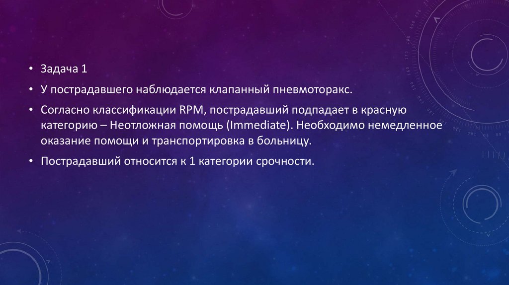 • Задача 1• У пострадавшего наблюдается клапанный пневмоторакс.