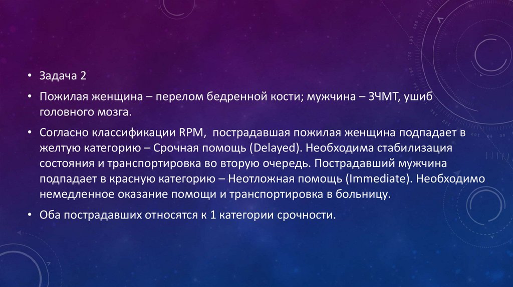 • Согласно классификации RPM, пострадавшая пожилая женщина подпадает в