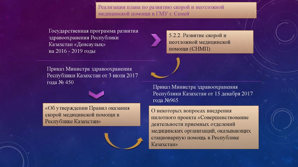 Реализация плана по развитию скорой и неотложноймедицинской помощи в ГМУ г. Семей