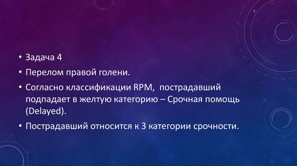• Согласно классификации RPM, пострадавший подпадает в зеленую
