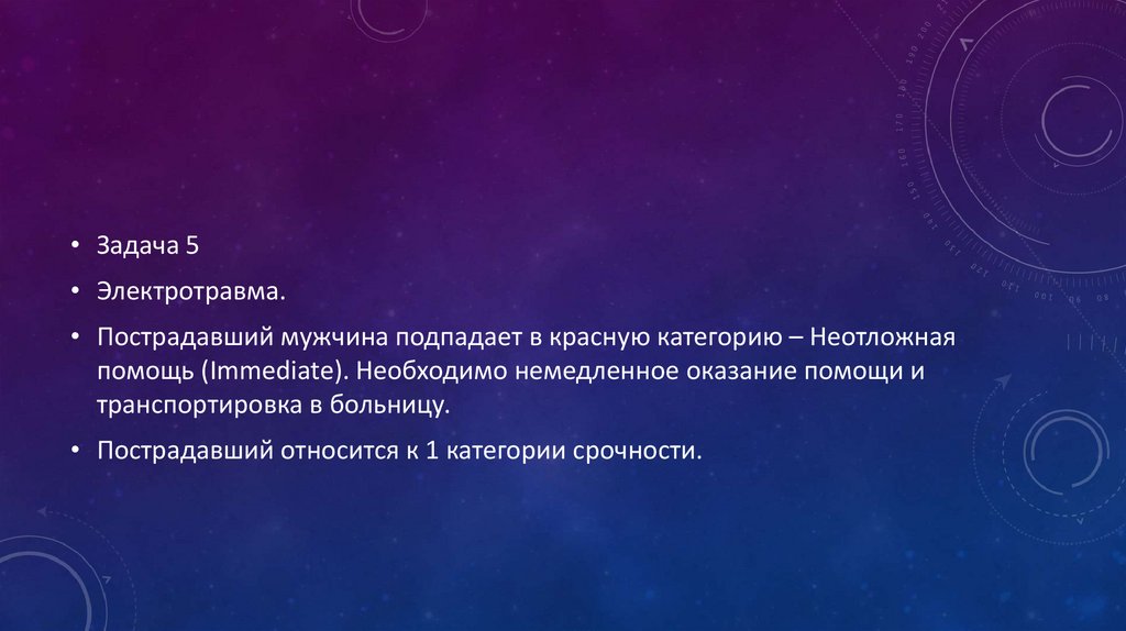 ЗАДАЧА №5• В диспетчерскую поступил вызов . Мужчина 30 лет, при падении линии