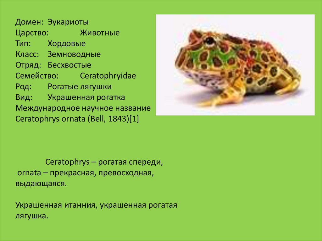 1. Украшенная рогатка Ceratophrys ornata (Bell, 1843)