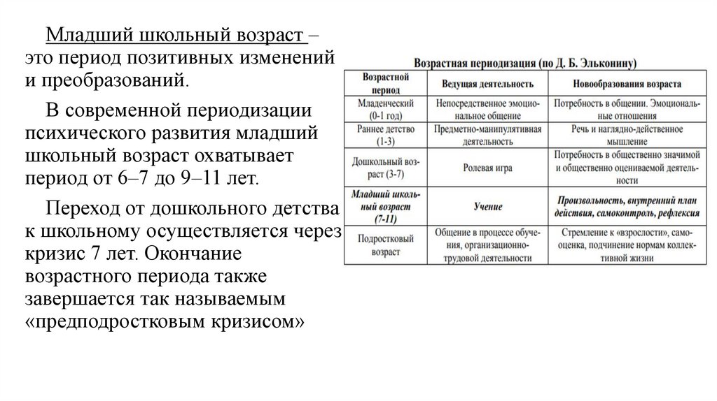 1. Младший школьный возраст - это2. Кризис 7 лет