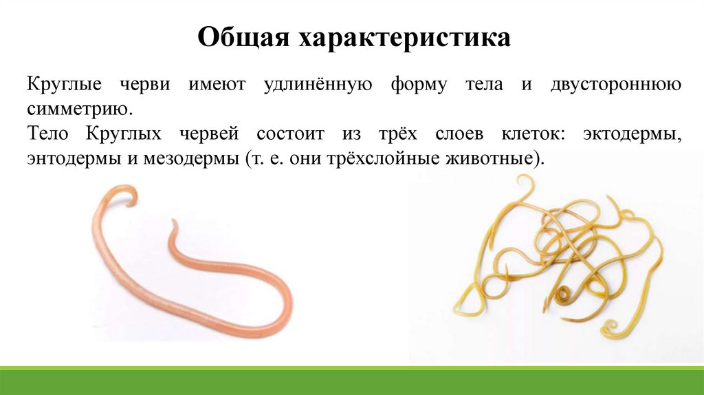 Общая характеристикаКруглые черви имеют удлинённую форму тела и двустороннюю