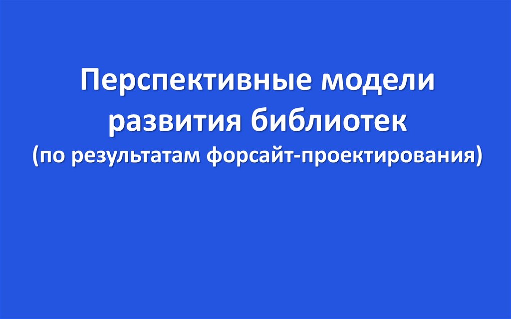 Перспективные модели развития библиотек (по результатам форсайт-проектирования)