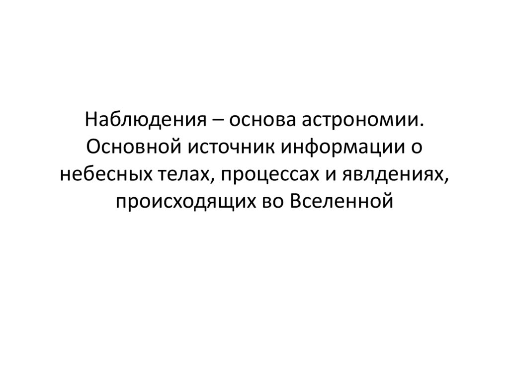1. Наблюдения – основа астрономии. Основной источник информации о небесных телах, процессах и явлдениях, происходящих во Вселенной