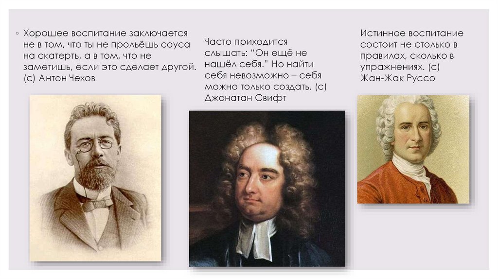 ◦ Хорошее воспитание заключаетсяне в том, что ты не прольёшь соуса