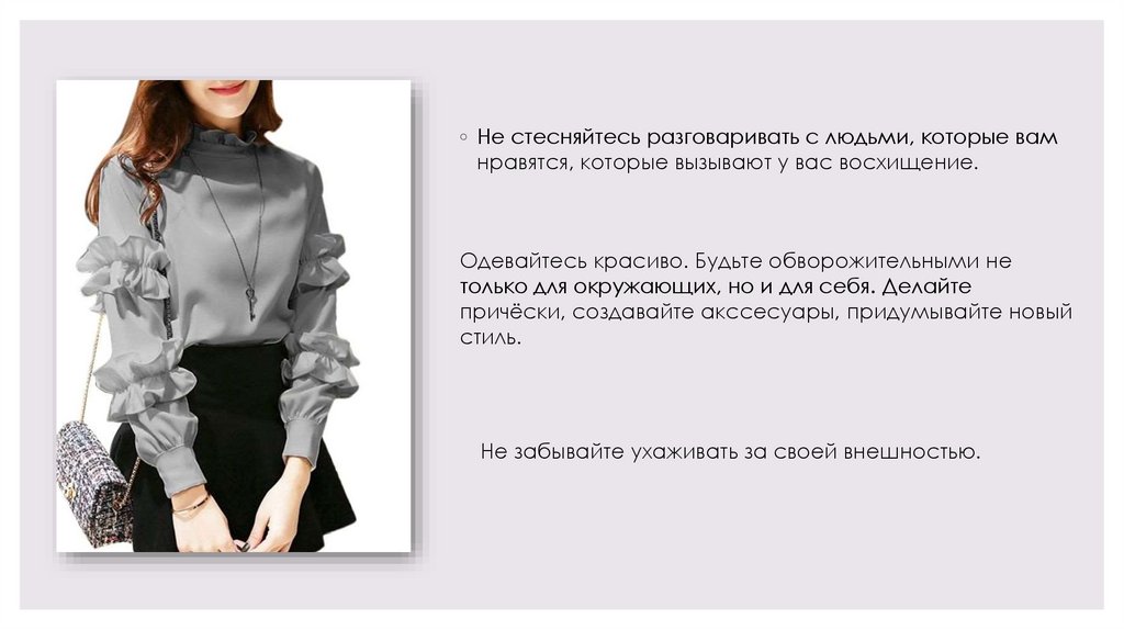 ◦ Не стесняйтесь разговаривать с людьми, которые вамнравятся, которые вызывают у вас восхищение.