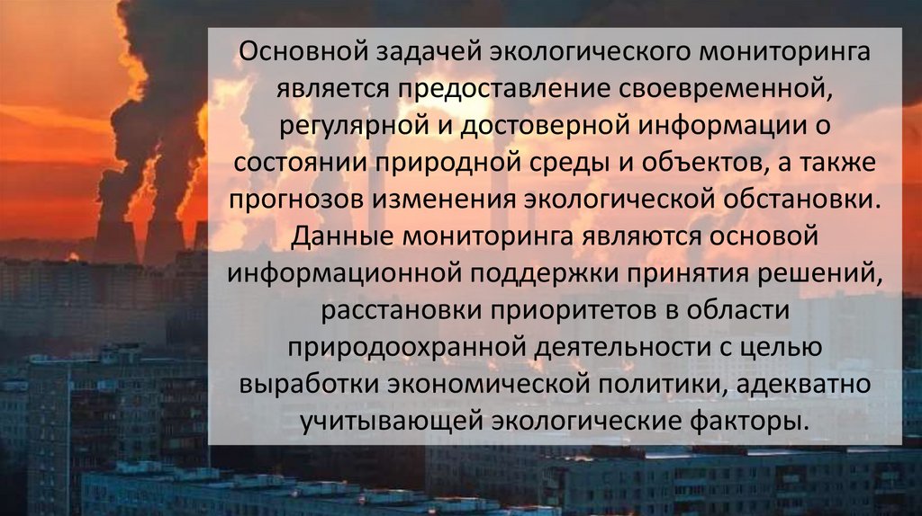 Основной задачей экологического мониторингаявляется предоставление своевременной,