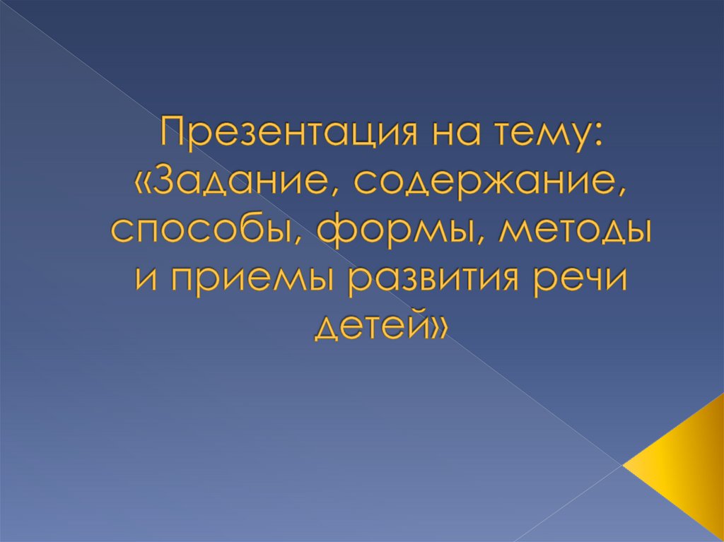 Презентация на тему: «Задание, содержание, способы, формы, методы и приемы развития речи детей»