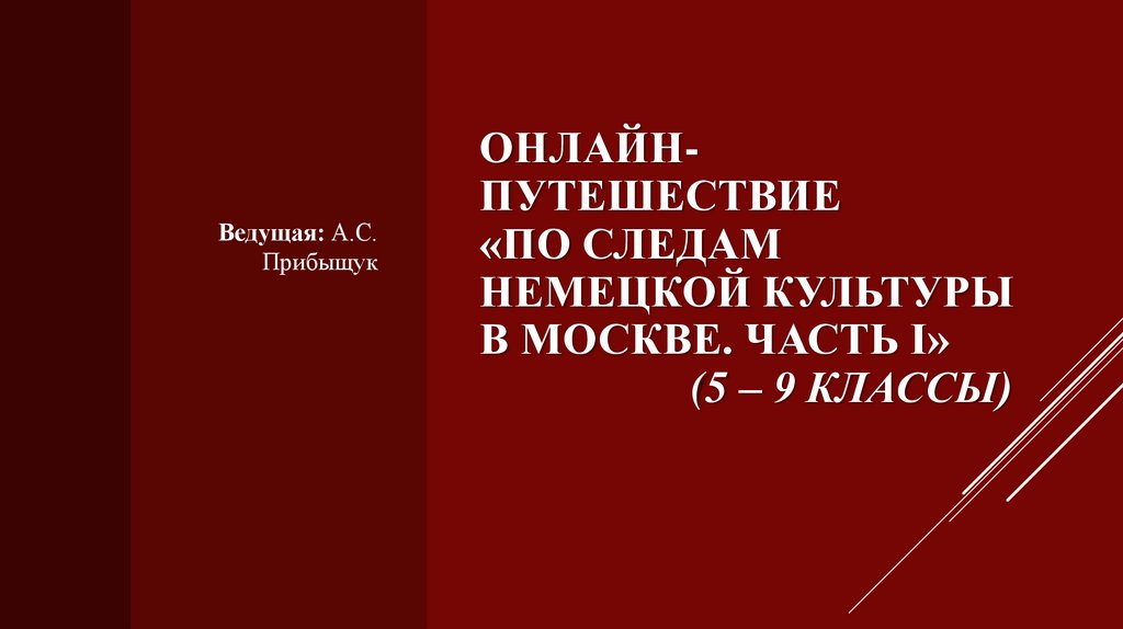 1. Онлайн-путешествие «По следам немецкой культуры в Москве. Часть I» (5 – 9 классы)