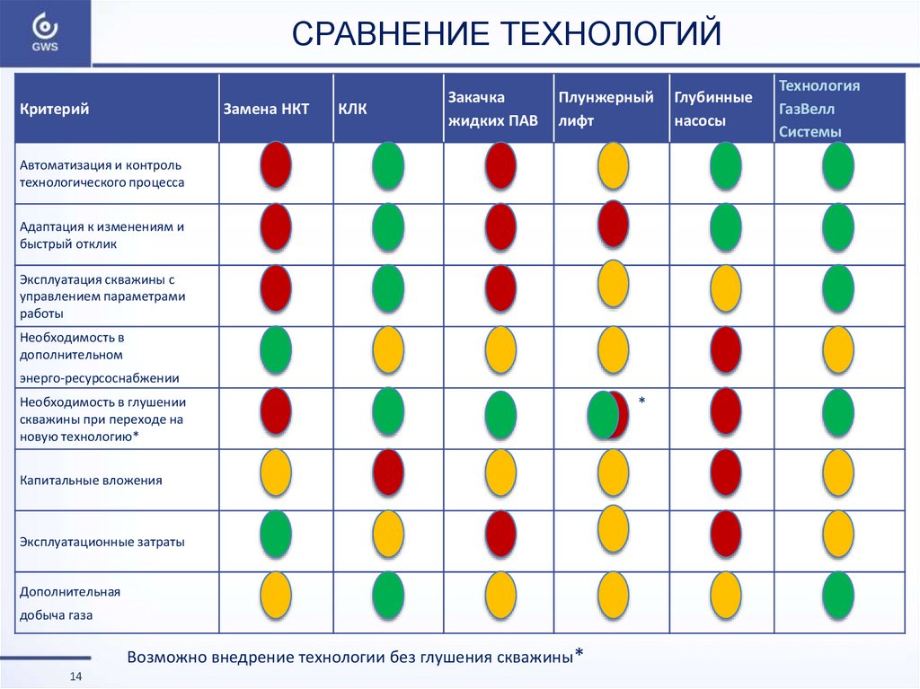 СРАВНЕНИЕ ТЕХНОЛОГИЙКритерий