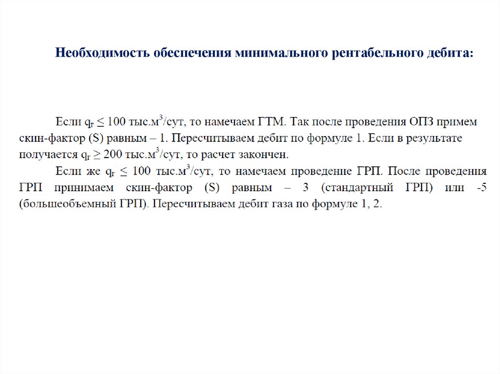 Необходимость обеспечения минимального рентабельного дебита:6.