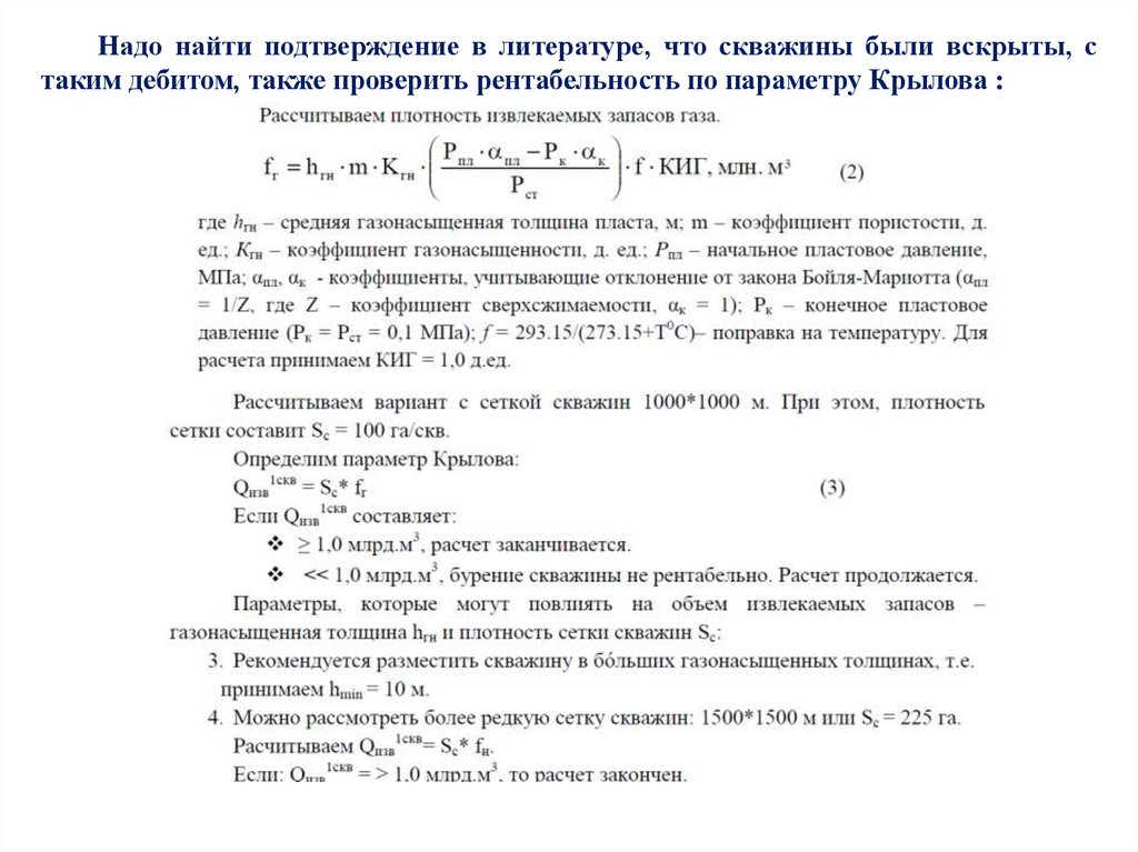 Надо найти подтверждение в литературе, что скважины были вскрыты, стаким дебитом, также проверить рентабельность по параметру Крылова :