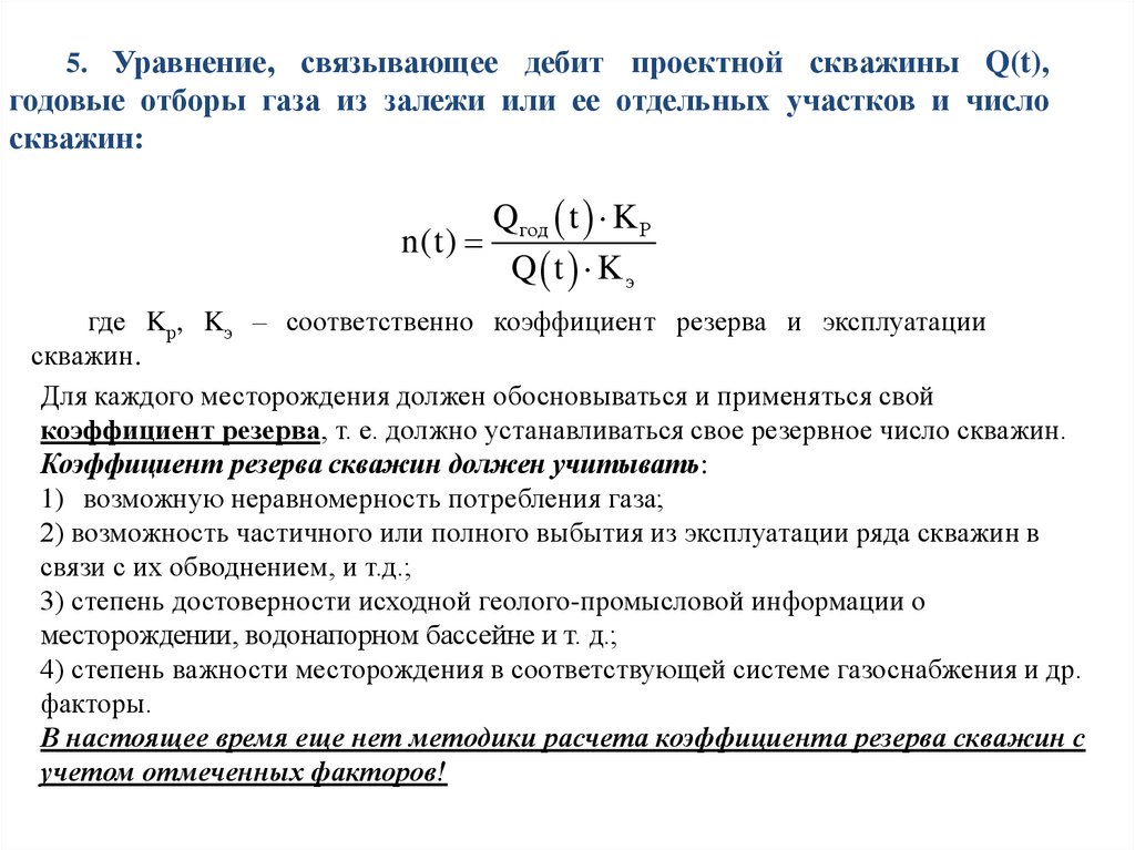 5. Уравнение, связывающее дебит проектной скважины Q(t),годовые отборы газа из залежи или ее отдельных участков и число