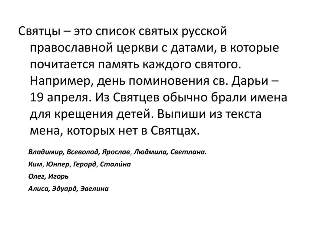 Святцы – это список святых русскойправославной церкви с датами, в которые