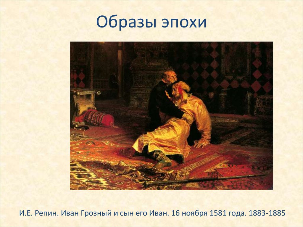 Образы эпохиИ.Е. Репин. Иван Грозный и сын его Иван. 16 ноября 1581 года. 1883-1885