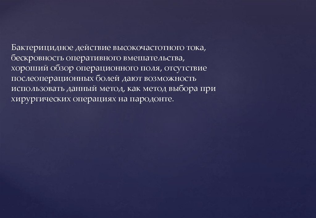 Бактерицидное действие высокочастотного тока,бескровность оперативного вмешательства,