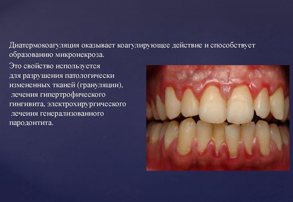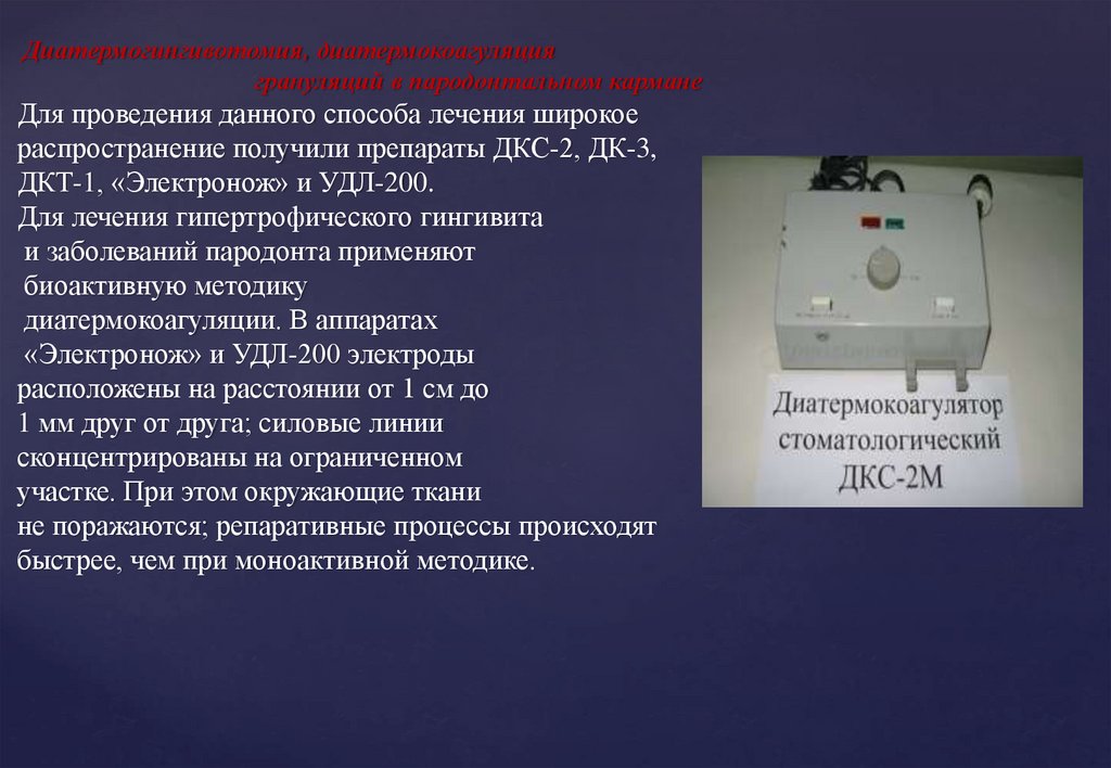 Диатермогингивотомия, диатермокоагуляциягрануляций в пародонтальном кармане