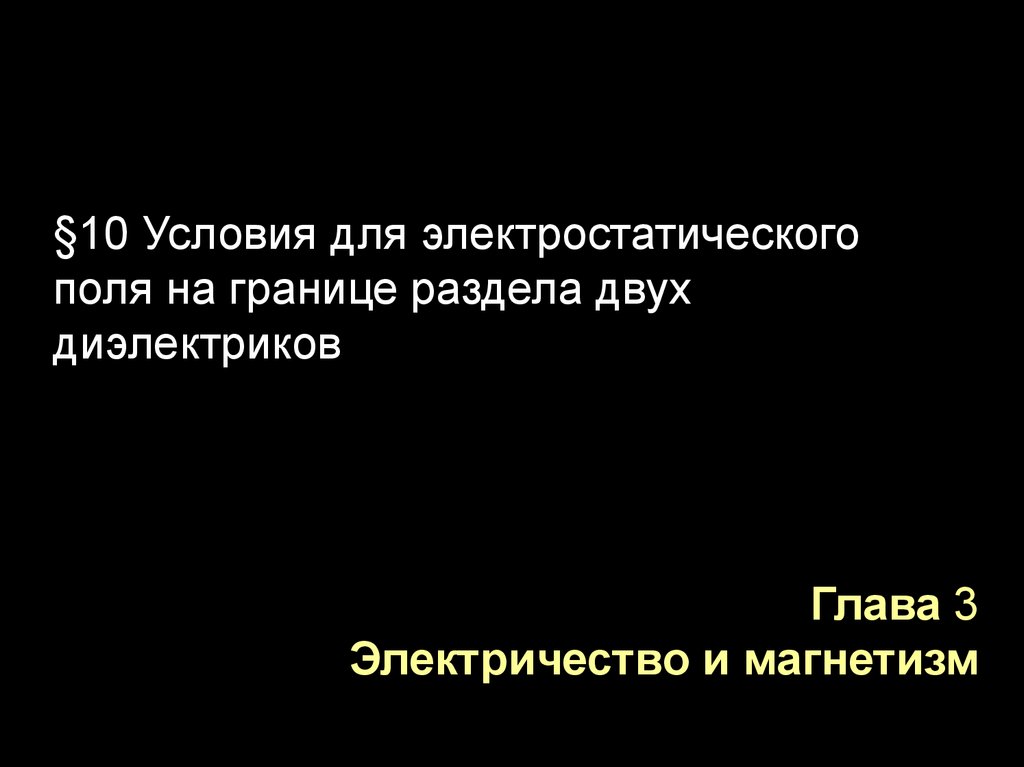 Условия для электростатического поля на границе раздела двух диэлектриков