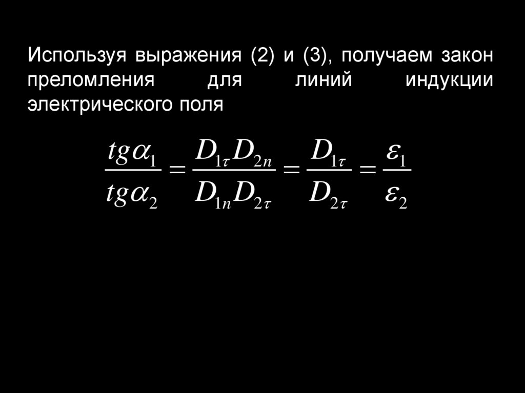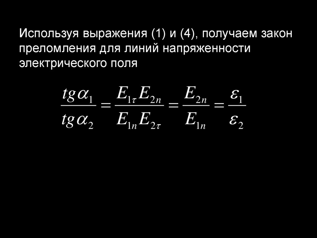 Используя выражения (1) и (4), получаем законпреломления для линий напряженности