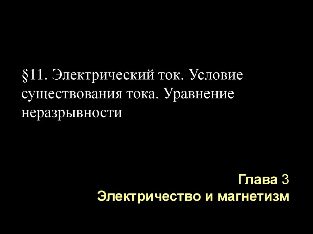 Электрический ток. Условие существования тока. Уравнение неразрывности