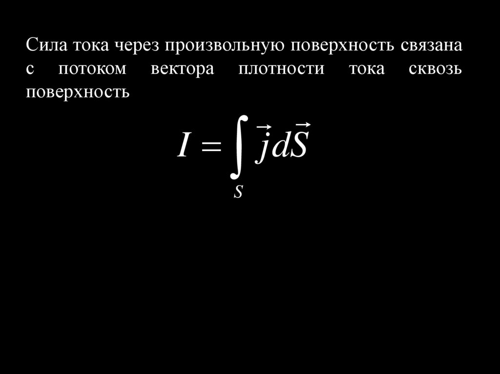 Сила тока через произвольную поверхность связанас потоком вектора плотности тока сквозь