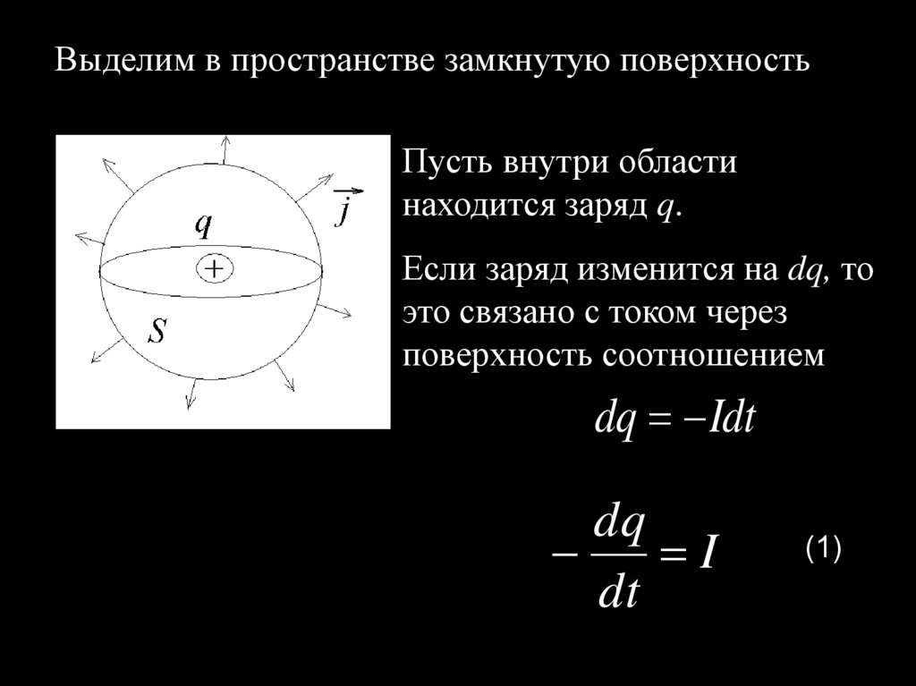 Выделим в пространстве замкнутую поверхностьПусть внутри области