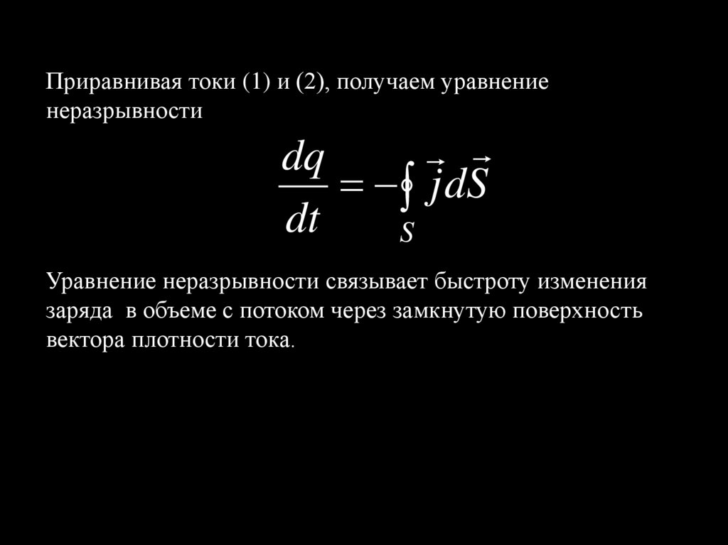 Приравнивая токи (1) и (2), получаем уравнениенеразрывности