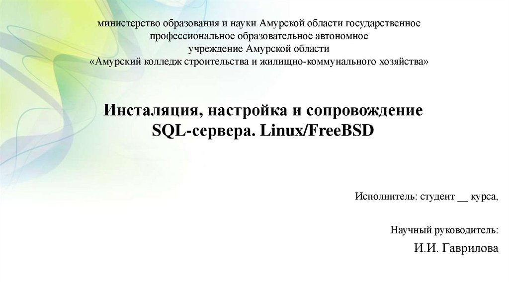 Инсталяция, настройка и сопровождение SQL-сервера. Linux/FreeBSD