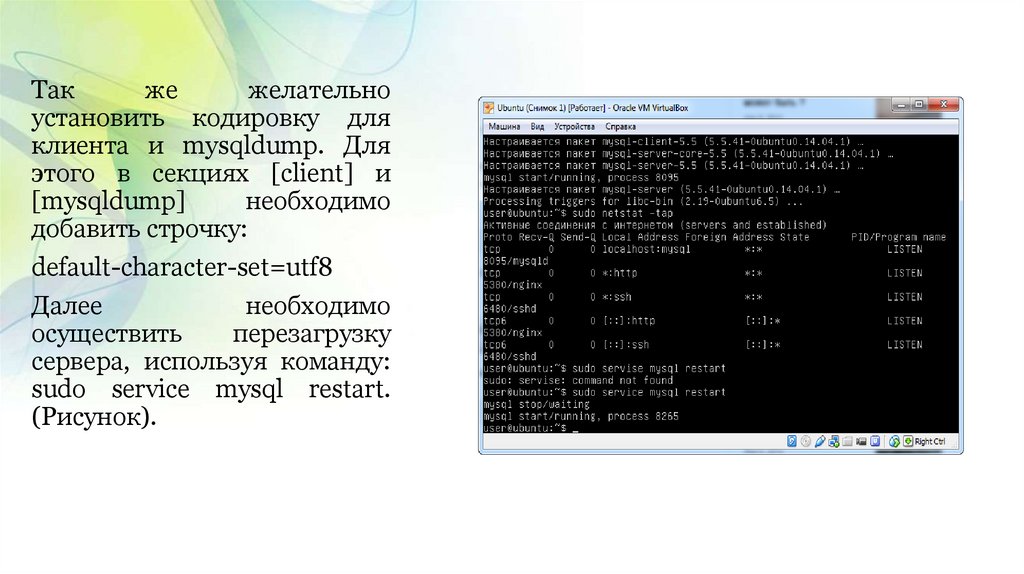 • В ходе выполнения курсового проекта был рассмотренвопрос об установке и настройке MYSQL-сервера, для его