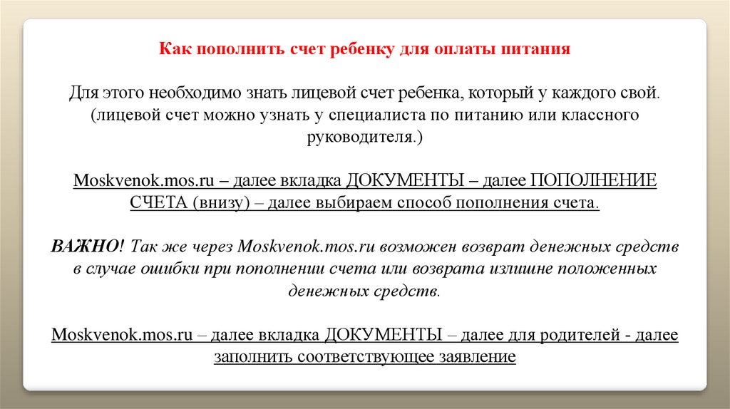 ВАЖНО! Так же через Moskvenok.mos.ru возможен возврат денежных средств