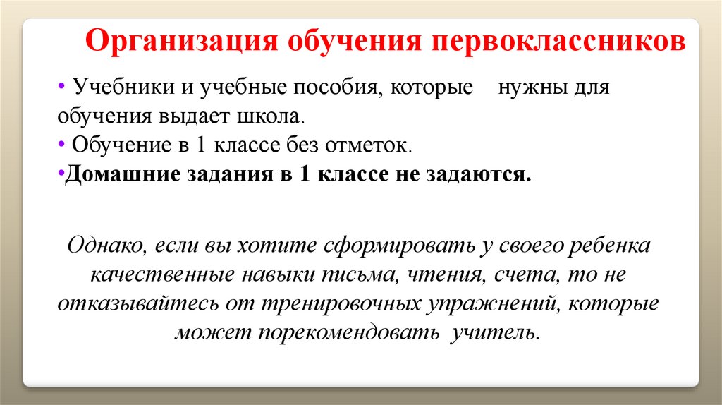 Организация обучения первоклассников• Учебники и учебные пособия, которые нужны для