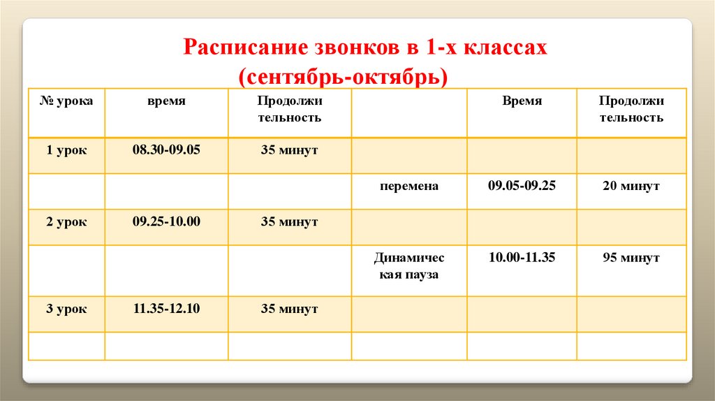 - сентябрь-октябрь – по 3 урока в день по 35 минут