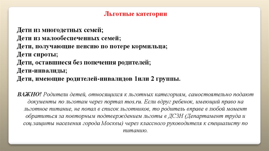 ВАЖНО! Родители детей, относящихся к льготных категориям, самостоятельно подают