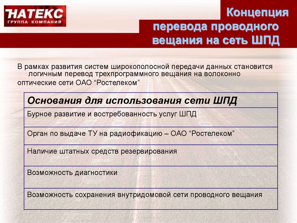 • Концепция перевода проводного вещания на сеть ШПД