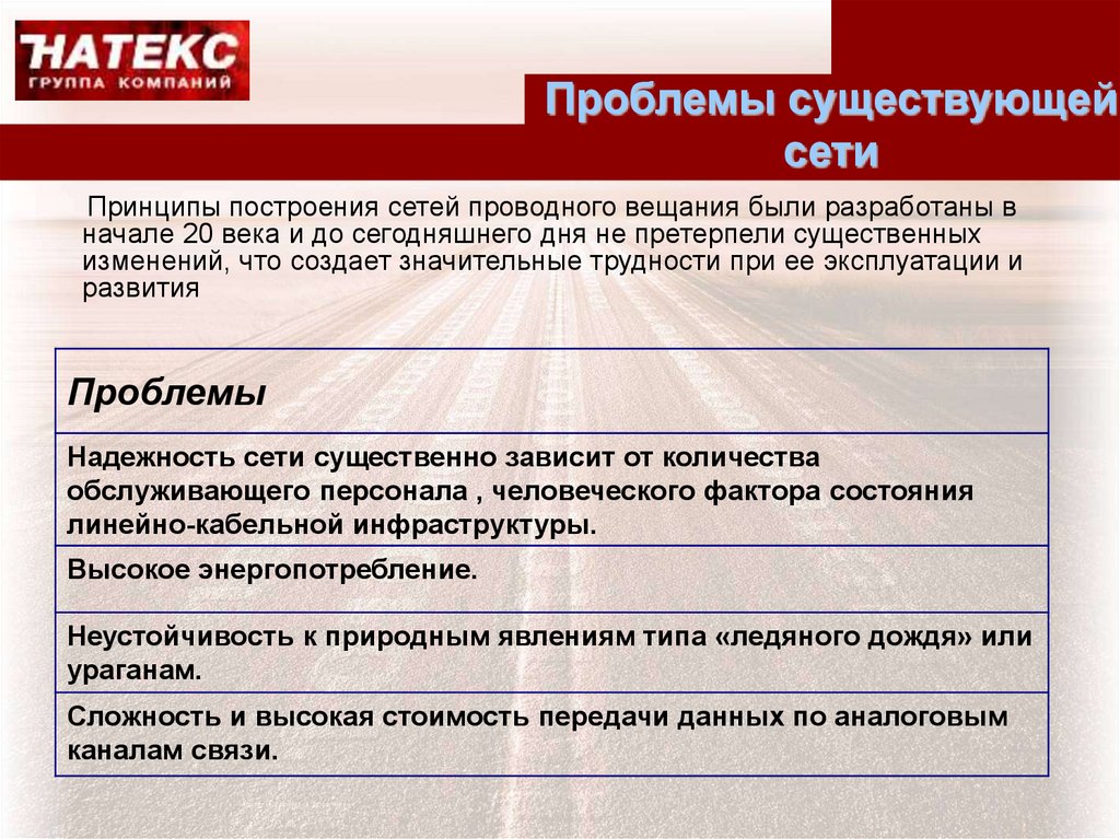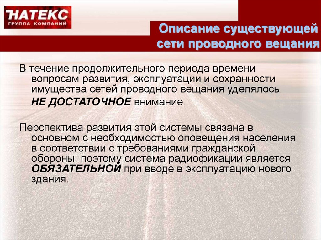 План презентации• Описание существующей сети проводного вещания