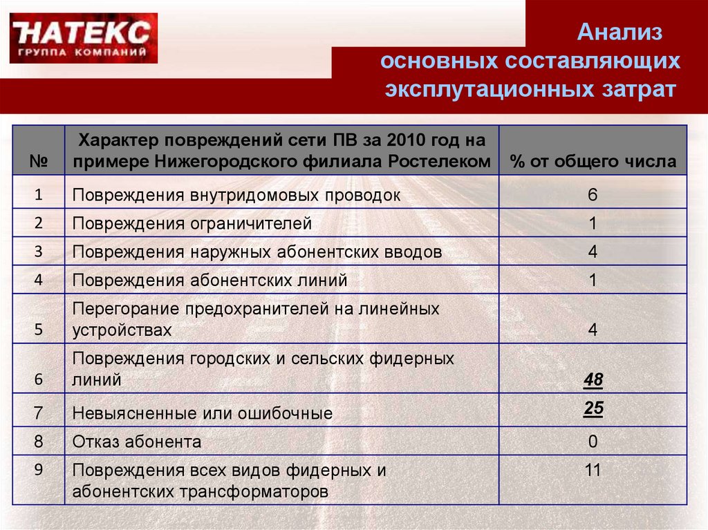 • Анализ основных составляющих эксплутационных затрат