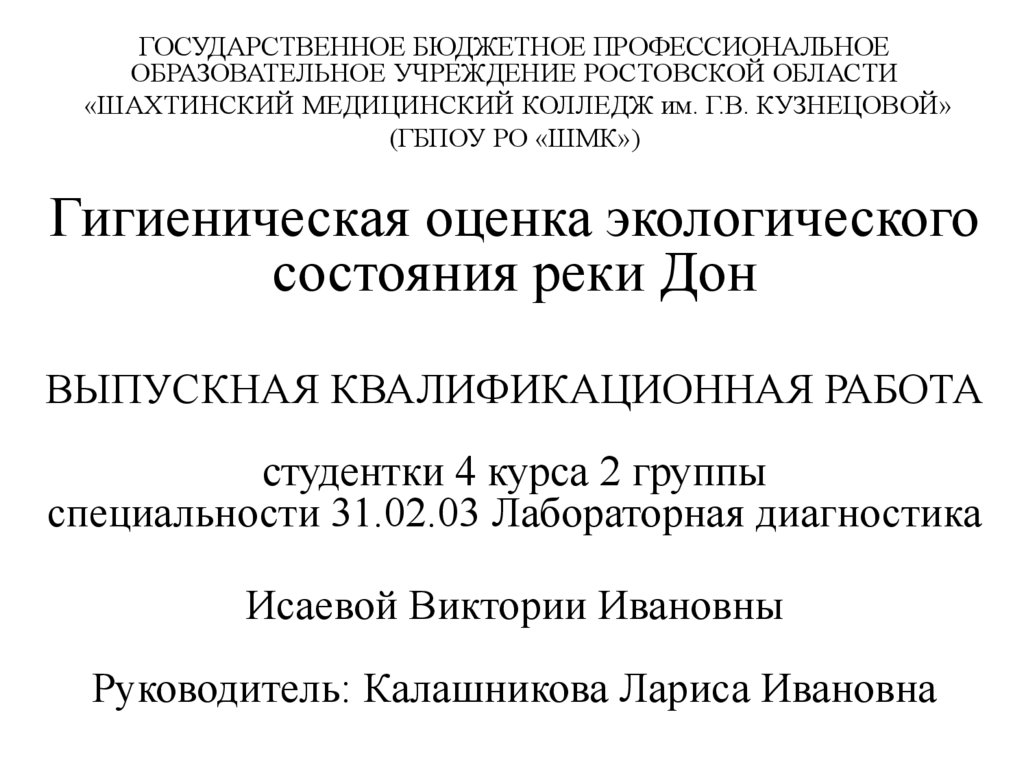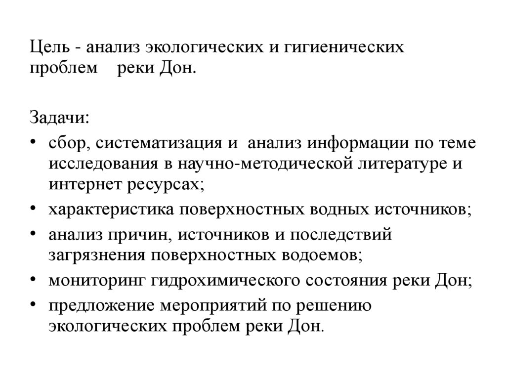 Цель - анализ экологических и гигиеническихпроблем реки Дон.