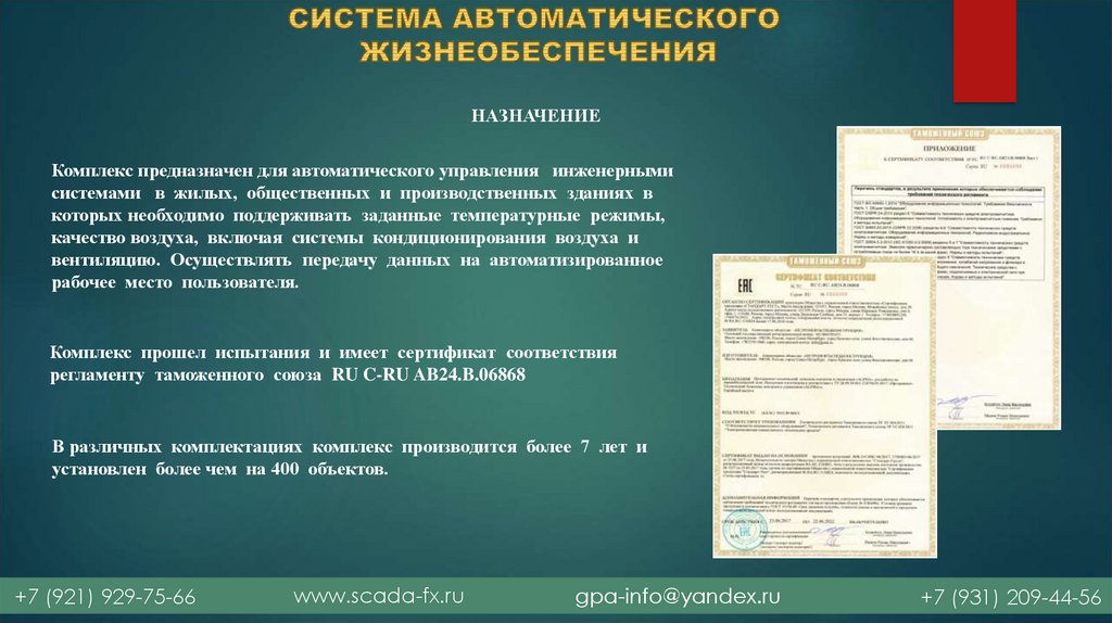 НАЗНАЧЕНИЕКомплекс предназначен для автоматического управления инженерными