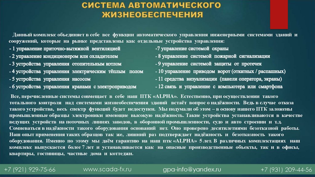Данный комплекс объединяет в себе все функции автоматического управления инженерными системами зданий исооружений, которые на рынке представлены как отдельные устройства управления: