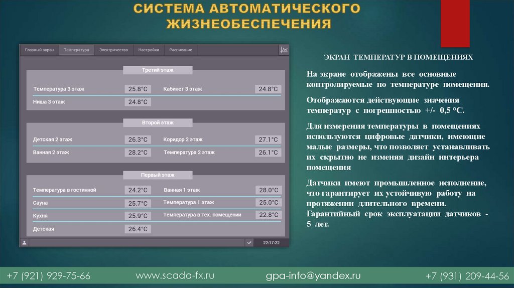 ЭКРАН ТЕМПЕРАТУР В ПОМЕЩЕНИЯХНа экране отображены все основные